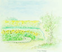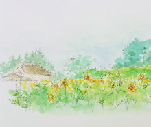 縁起の良い ひまわりが 優しく 描かれております。